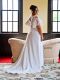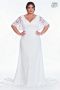 • Details: A-Line feminine crepe with a V-neckline. Beautiful embroidery lace flutter sleeves and a deep embroidery lace back with hidden zipper and button closer. Chapel train.